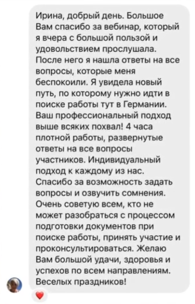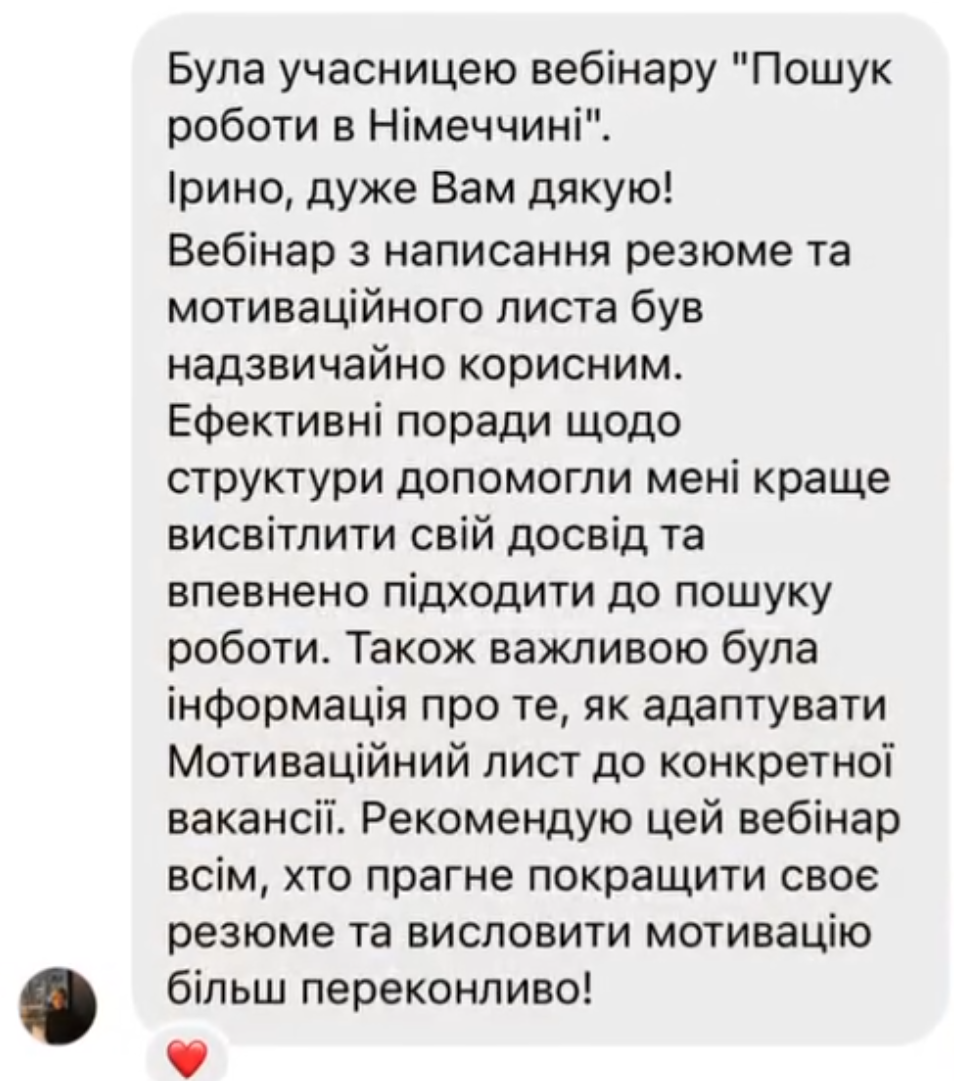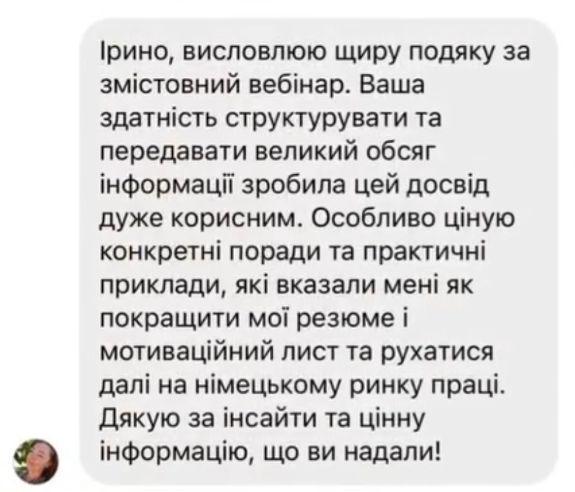 Розуміючи ринок праці як України, так і Німеччини, я допомагаю Вам уникнути типових помилок і знайти роботу, яка стане основою для стабільного майбутнього.